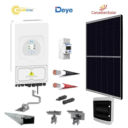 Kit sistem fotovoltaic 5 kW complet, hibrid monofazat – Invertor Deye si panouri fotovoltaice Canadian Solar la alegere